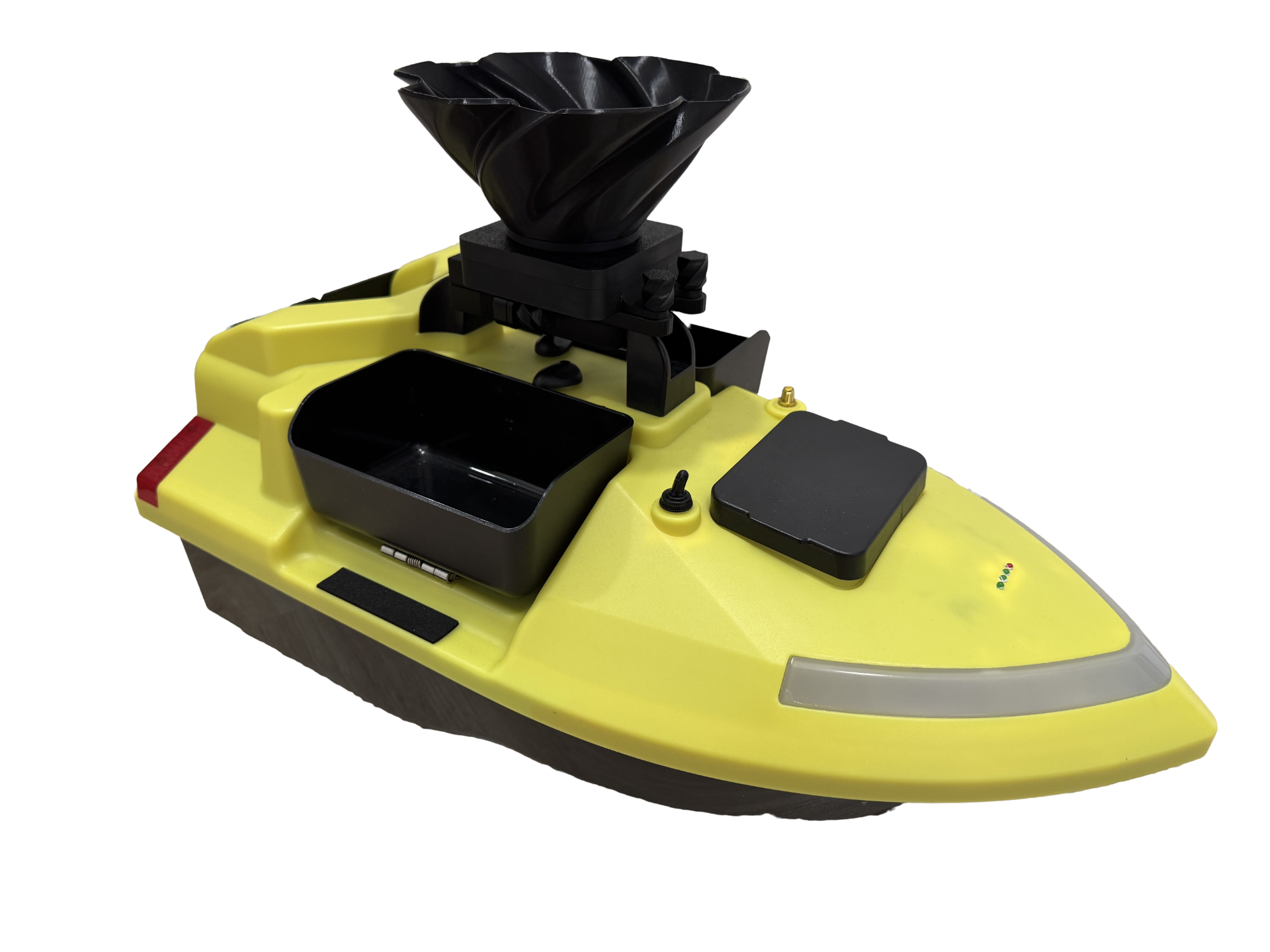 Rozmetadlo je vymodelováno přímo námi a je navrženo tak, aby perfektně rozhodilo krmení. Lodička je s rozmetadlem stylová a decentní zároveň.