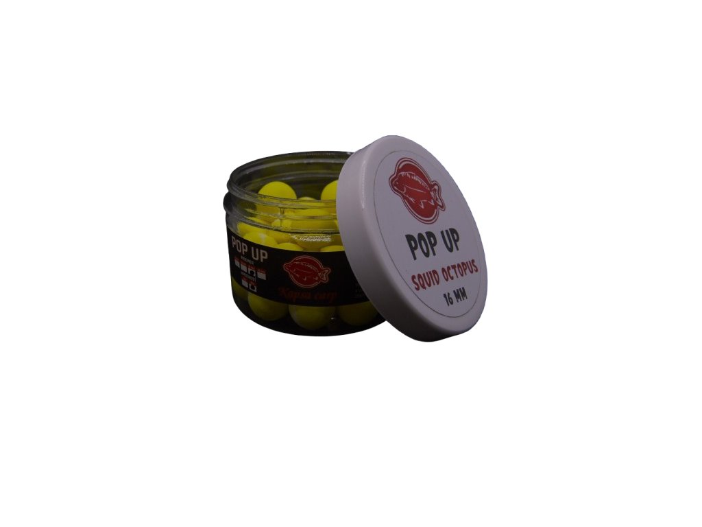 Pop Up jsou vyrobeny z kvalitní plovoucí směsi a exkluzivní esence. Plovoucí fluo boilies jsou velmi účinnou nástrahou, použitelnou samostatně nebo v kombinaci s klasickým boilies, peletou.